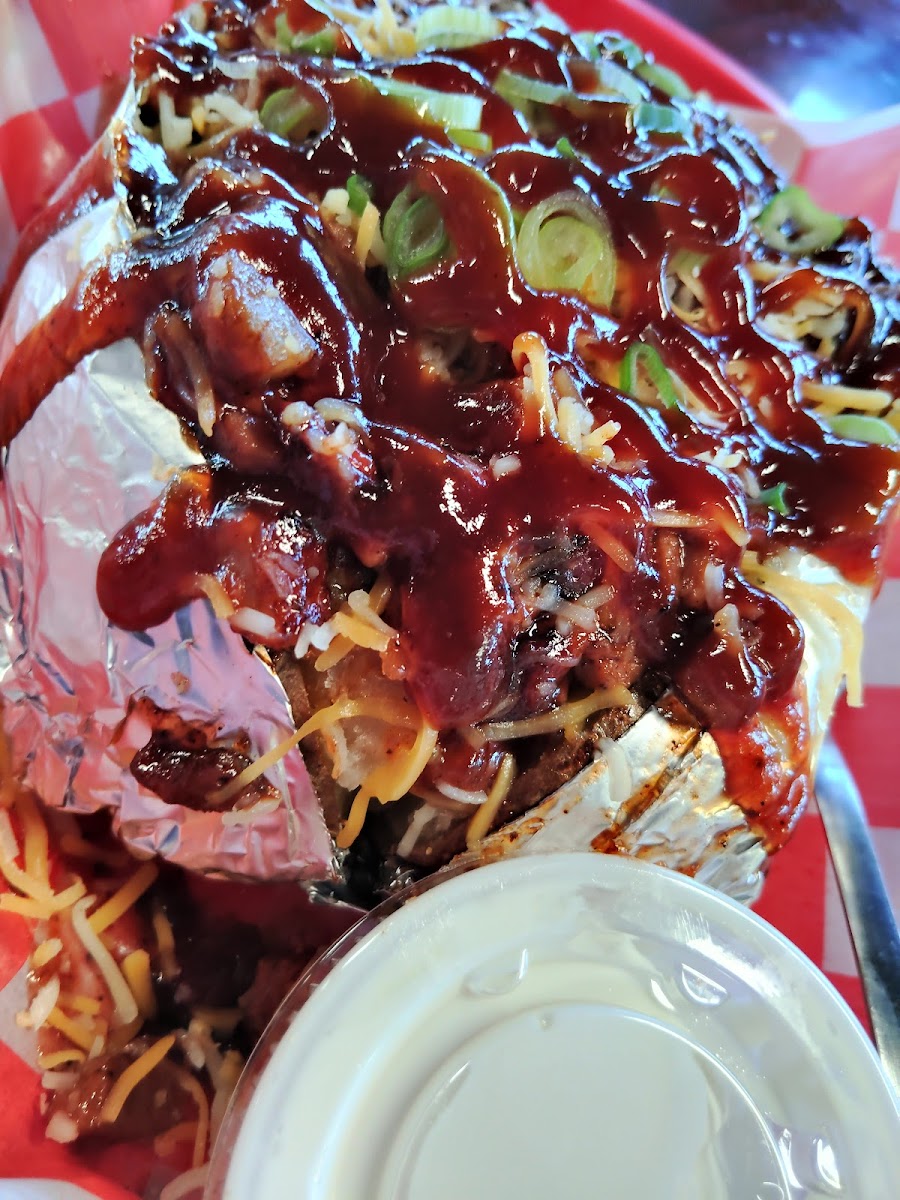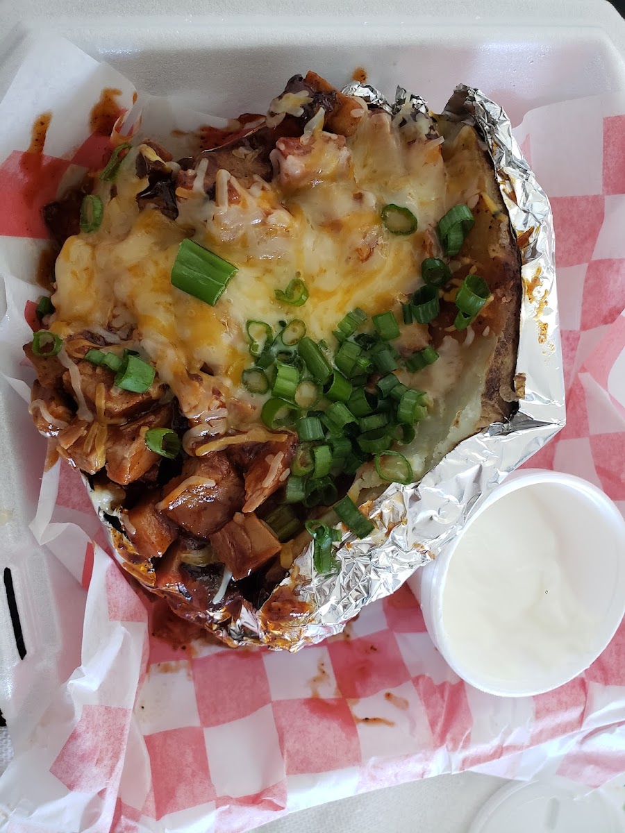 This was our first visit, we both had the BBQ baked potato, it was a large serving, hot and delicious It is a chill spot with good energy, the service was very good, Lauren was helping us as well running the entire place, answering phones, cleaning, cooking, helping the drive through! We would love to come back.